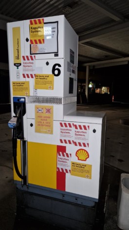 I designed the action and stickers for a subvertising campaign targeting Oil companies. On April 1st activists across Germany shut down petrol pumps with stickers that read